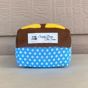 Cotton, corduroy, felt, stuffing, sand, cardboard, and plastic