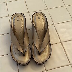 Brand new metallic gold sandals, size7 with a 2 inch heel.