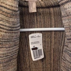 This sweater is an xs from forever 21! Has never been worn and is very cute! Has not been worn because friends bought me the same gift so I now have an extra! Original price at the store was $34.50. Very cute with jeans leggings dresses anything! Crochet on the sleeves and has front pockets! I absolutely love it!