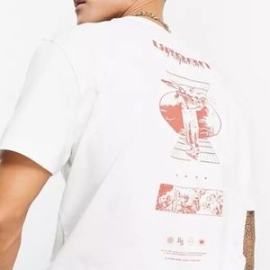 Brand new in the bag white tshirt with red graphics on back. Plain front,