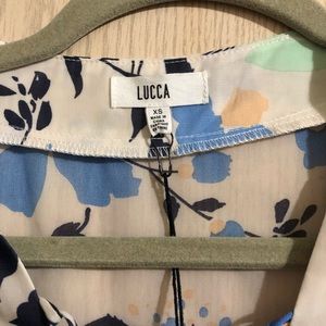 Brand new, never worn, tags still on. Long sleeve top with beautiful drawstring neckline with tassels at the end. Great with tank top underneath. Light and airy. No stains, no tears and no snags.
