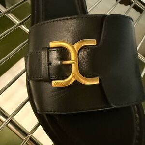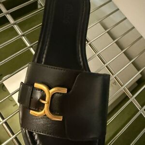 Brand new with box Chloe women’s size 6 Black Slide Sandals with Gold Accent