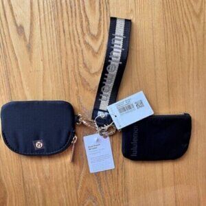 Brand new with tags Lululemon dual pouch wristlet and keychain. Color is black and gold Pouch dimensions: 11.5cm x 0.5cm x 7cm (4.5" x 0.2" x 2.8") Detachable pouches let you customize the look and function