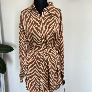 Brand new and beautiful dress or top.. can be used either way! Belt option gives a flattering look to anyone. Neutral colored animal print gives it a modern yet sophisticated look!