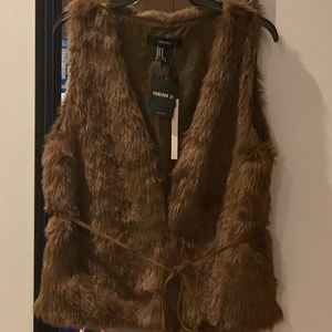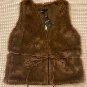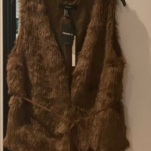 Brand new woman’s forever21 casual fluffy vest. 2 clip ons to close vest in the center of vest. Has adjustable detachable string around the waist. Very sexy can be thrown over any of you liking. Color Brown size Medium. Exactly how shown in pictures