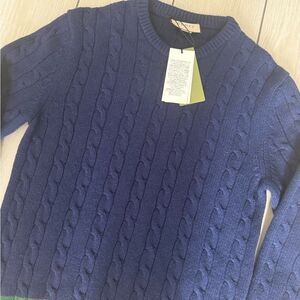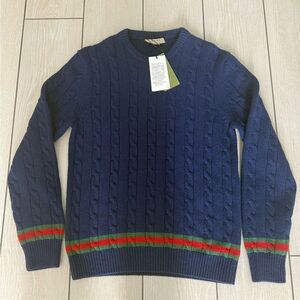 Brand new Gucci Stay warm and stylish with this navy cable knit sweater. Featuring bold red and green accents, it's perfect for any occasion.