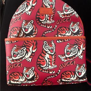 Brand new Stylish red backpack with bold tiger print. Features Gucci branding. Can be used by kids or adults comes with dustbag