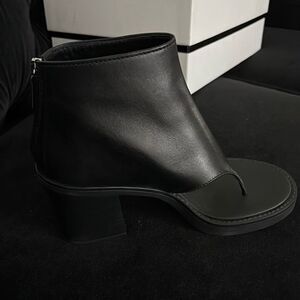Miu Miu Thong Block Heeled Ankle Boots size 8 comes with box Step out in style with these elegant black ankle boots. Perfect for any occasion, they offer both comfort and sophistication.100% Calfskin Leather, 100% Rubber