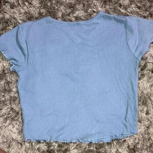 Brand new cropped bedazzled flower shirt with ruffles size medium