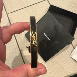 Brand new Elevate your style with this Saint Laurent black leather bracelet. Featuring a sleek design, it's perfect for any occasion.
