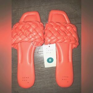 Pair your trendy wardrobe with these Woven Slide Sandals. These casual slide sandals make a comfy pick in your footwear collection. They feature a breezy open-toe design that 's finished with a broad woven instep strap for textured style. The flat heel along with a classic slip-on style make them super comfortable and easy to wear, while the textured outsole gives better grip while walking. Pair them with a range of outfits from dresses, to jumpsuits to tees and jeans for a warm-weather vibe
