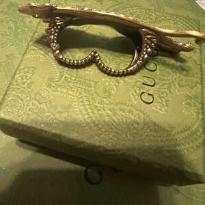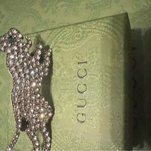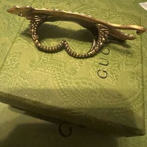Brand New Gucci Gold Metal Double Ring with Crystal Tiger size large fits 8-9 size