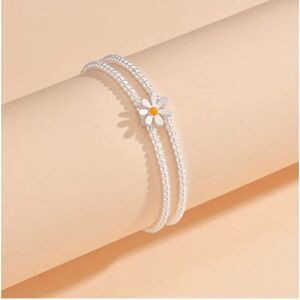 Brand New White Beaded Daisy Anklet 2.35" diameter
