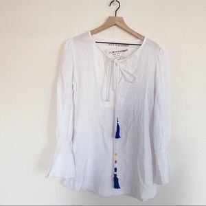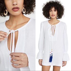 Brand New Alix of Bohemia LouLou Tasseled Textured Cotton Dress White