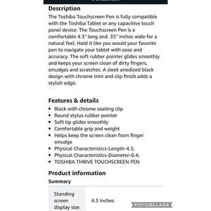 Fully compatible with Toshiba Tablet or any capacitive touch panel device