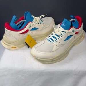 Step into standout comfort and bold design with the Brandblack Saga 130 in the "PRRB" colorway. This modern performance sneaker fuses fashion and function with a cream upper, striking red/blue accents, and a rugged Vibram outsole. Perfect for lifestyle or light training. These are deadstock – ready for a new home.