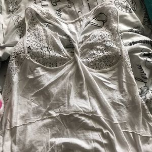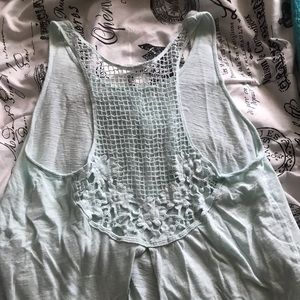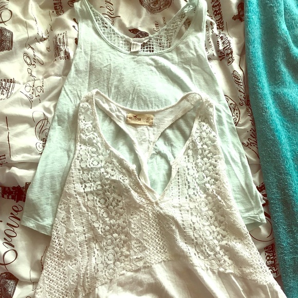 White is a Hollister XS, and the mint is a forever 21 M. Super cute and light! Lacey like details