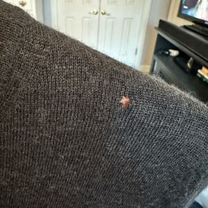 Excellent condition except, I didn’t notice the small hole in the right shoulder until
