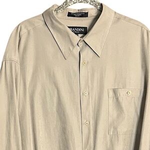 Classic beige button-up shirt. Features a front pocket. Perfect for casual or formal wear. Very soft satin feel. Very nice shirt. XXLT