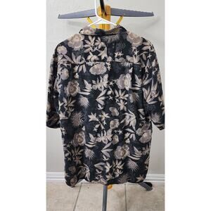 Embrace the relaxed spirit of the islands with this Brandini Hawaiian shirt. Decorated with a vibrant floral pattern, this button-up is a perfect addition to any wardrobe. Crafted from pure silk, it offers a luxurious feel with a casual look. The short sleeves and collared neckline make it an ideal choice for a day out in the sun or a casual evening event. The shirt comes in a size M, which fits a regular size type, making it a versatile option for men of all sizes. With its unique multicolor design and Hawaiian theme, this shirt is sure to turn heads wherever you go.