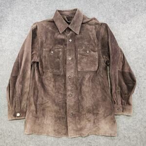 Brandini Jacket Mens Medium Brown Suede Leather Shirt Jacket Shacket Overshirt