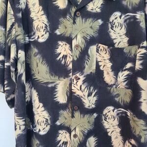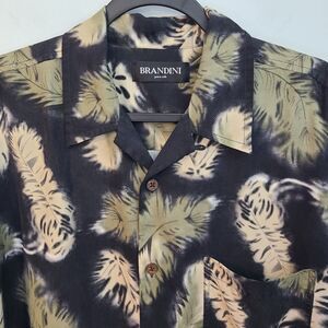 Brandini Mens XL 100% Silk Hawaiian Leaf Button Down Camp Shirt Travel Vacation