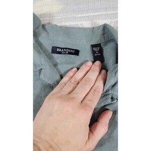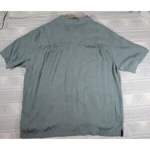 Brandini Pure Silk Men’s Short Sleeve Button Up Shirt XL Green Palm Leaf Pattern