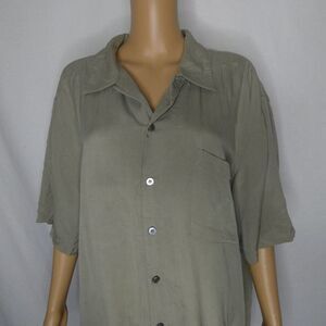 Brandini Pure Silk Taupe Tan Button Up Shirt XL Short Sleeve