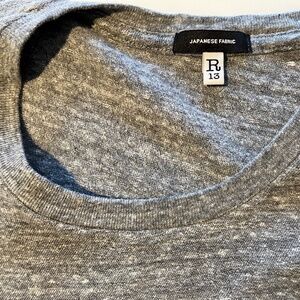 Distressed, brand-new, rude and comfortable! This R13 shirt measures 21" from pit to pit and 25" from neck to hem. (The shirt does not have a size specified on it.)