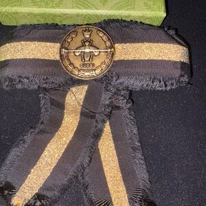 Brand new with box and dustbag Gucci Black Grosgrain Bow Brooch Pin with Pearls and Crystals This luxurious Gucci brooch accessory features a sophisticated black and gold design, perfect for elevating any outfit. The elegant bow is adorned with a stunning jeweled centerpiece, adding a touch of glamour and refinement. Ideal for special occasions, this accessory embodies timeless elegance and style.