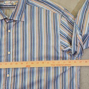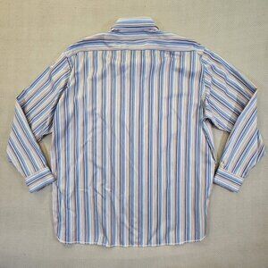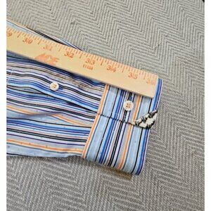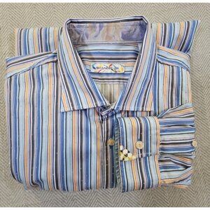 Brandolini Dress Shirt Men's XXL Blue Orange Stripe Long Sleeve Textured EUC