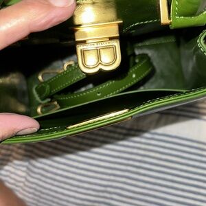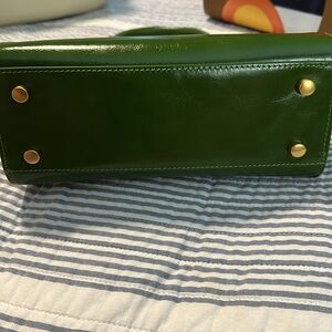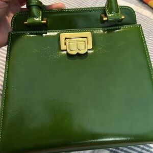 Gorgeous brunch top handle handbag, green, crossbody strap, leather, Brass hardware, 3 very small areas of discoloration from factory (see pictures), worn twice 🥰🥰🥰