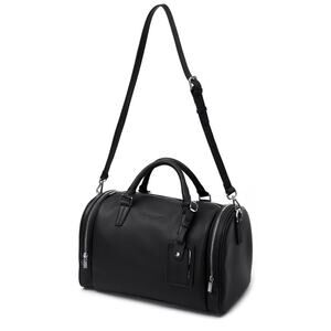Brandon Blackwood Medium Duffle Bag in Black Grain Leather with Silver Hardware
