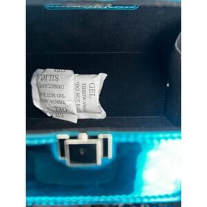 Brand new mini Kendrick Trunk in blue Metallic Mirror Vegan Leather with Silver Hardware