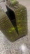 Elegant olive crystal bag by Brandon Blackwood. Box shape with top handle and sparkling design.