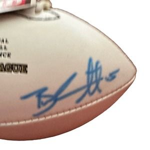 I’m selling an authentic signed autographed Mini football signed by great player #15 Brandon Marshall, it was also signed by another player by I’m not sure who it is, any big sports fans PLEASE let me know if you do know!!!