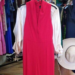 Brandon Maxwell Double-Face Crepe Rolled-Collar Jumpsuit. Excellent condition, no callouts. Size 6. Measures (laying flat): 17" pit to pit, 14" flat across waist and 33" inseam. Back zipper with single hook and eye closure., Viscose, acetate and elastane blend. Lining: 100% polyester. Dry clean only. Pockets. Plunging, deep v-neckline. Brandon Maxwell is a luxury women's ready-to-wear label launched in New York in 2015. The brand is known for creating sophisticated and powerful garments with impeccable tailoring. The designer has received several awards, including the 2016 CFDA Swarovski Award for Womenswear. His designs are frequently worn by celebrities on the red carpet.