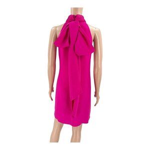 Chic and feminine Brandon Maxwell bow-back dress in a vibrant fuchsia pink. This shift mini dress features a neck-tie halter closure, dramatic back bow, hidden back zipper, and is fully lined for a flawless silhouette. Perfect for cocktail parties, events, or a bold evening look.