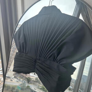 Step out in style with this stunning Brandon Maxwell black crop top blouse. Featuring unique pleated detailing on both front and back, this top adds a chic and sophisticated flair to any outfit.