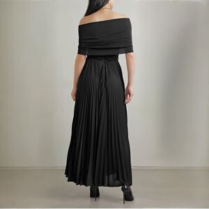 Brandon Maxwell Off Shoulder Pleated Formal Gown Draped Shoulders Black Tie