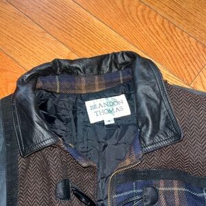 Brandon Thomas Blue and Brown Patchwork Bomber Jacket