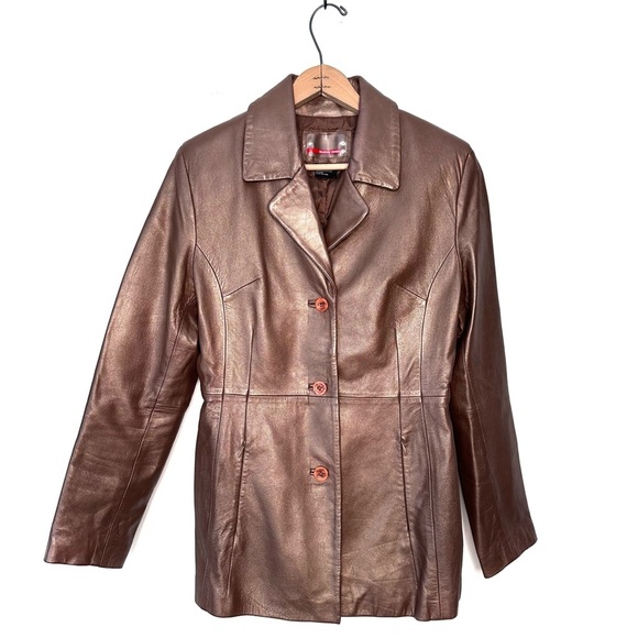 Brandon Thomas Brown Bronze Leather Coat Size Medium