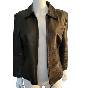 Brandon Thomas Leather Jacket with floral cutouts Black M