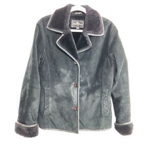 Brandon Thomas Suede Jacket Coat with Fur Lining Collar Sleeves Womens Medium