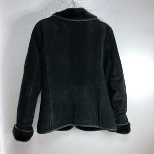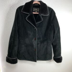 Brandon Thomas Suede Jacket Coat Black Fur Lining Collar Sleeves Womens Medium