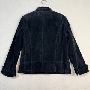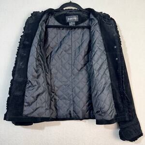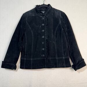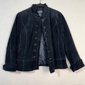 Brandon Thomas VTG Black Suede Leather Jacket Blazer Ruffle-Edged Size Large
