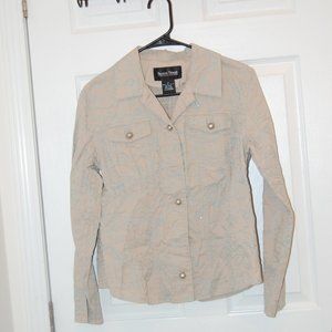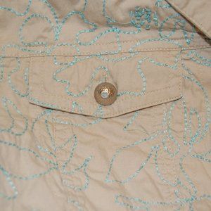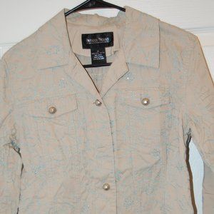 Brandon Thomas Women's Beige W/ Blue Seed Bead Embroidery Jacket Size Medium