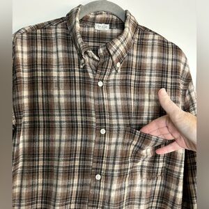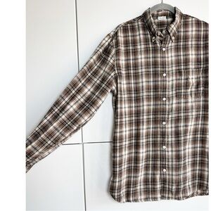 Brandy Melville 90’s Flannel John Galt One Size Brown Cream Grunge Goth Grandpa