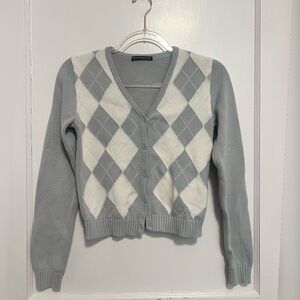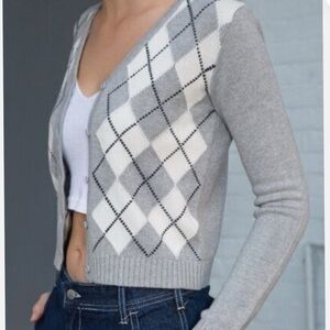 Brandy Melville Argyle Cropped Cardigan Sweater V Neck 90s Y2K TRENDING