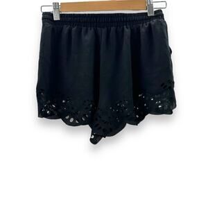 Brandy Melville Black Floral Laser Cut Eyelet High Rise Drawstring Shorts